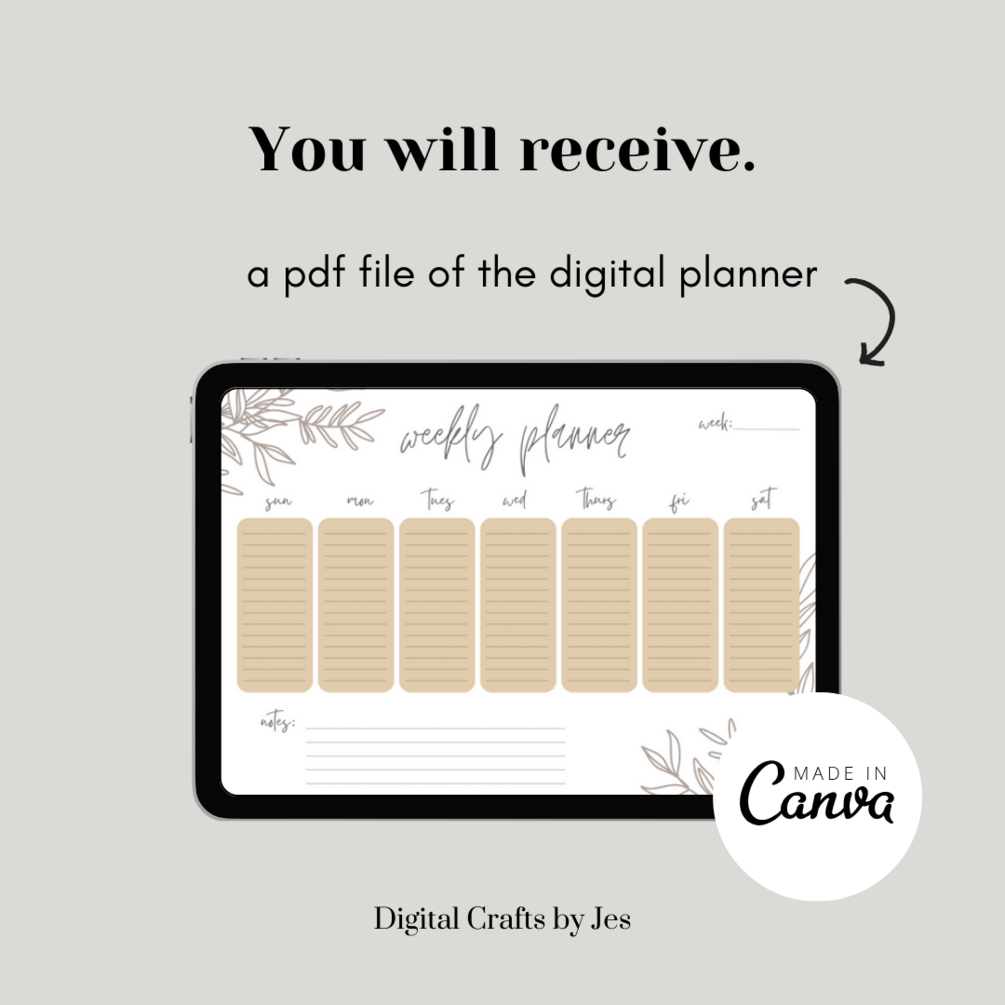 Elevate your planning experience with our Weekly Earth Tone Digital Planner, a perfect fusion of style and functionality. Immerse yourself in the calming hues inspired by nature, from warm sandy tones to rich forest greens. This user-friendly digital interface offers seamless navigation and customizable sections for tasks, goals, notes, and priorities. Express your individuality with digital stickers and enjoy multi-platform accessibility, ensuring you stay organized on any device. Integrated reminders, eco-friendly design, and secure cloud sync make this planner the ideal choice for those seeking a harmonious blend of aesthetics and efficiency. Upgrade your planning game with the Weekly Earth Tone Digital Planner and embrace a more organized and visually appealing approach to your week.