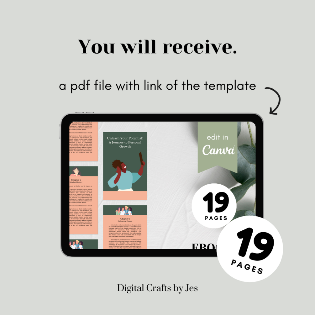 Unlock your full potential with our empowering Self-Help Ebook and Editable Canva Template bundle. This comprehensive digital product is designed to guide you on a transformative journey towards personal growth and self-discovery. Whether you're a life coach, entrepreneur, or someone on a quest for self-improvement, this package offers the perfect blend of insightful content and customizable design elements.