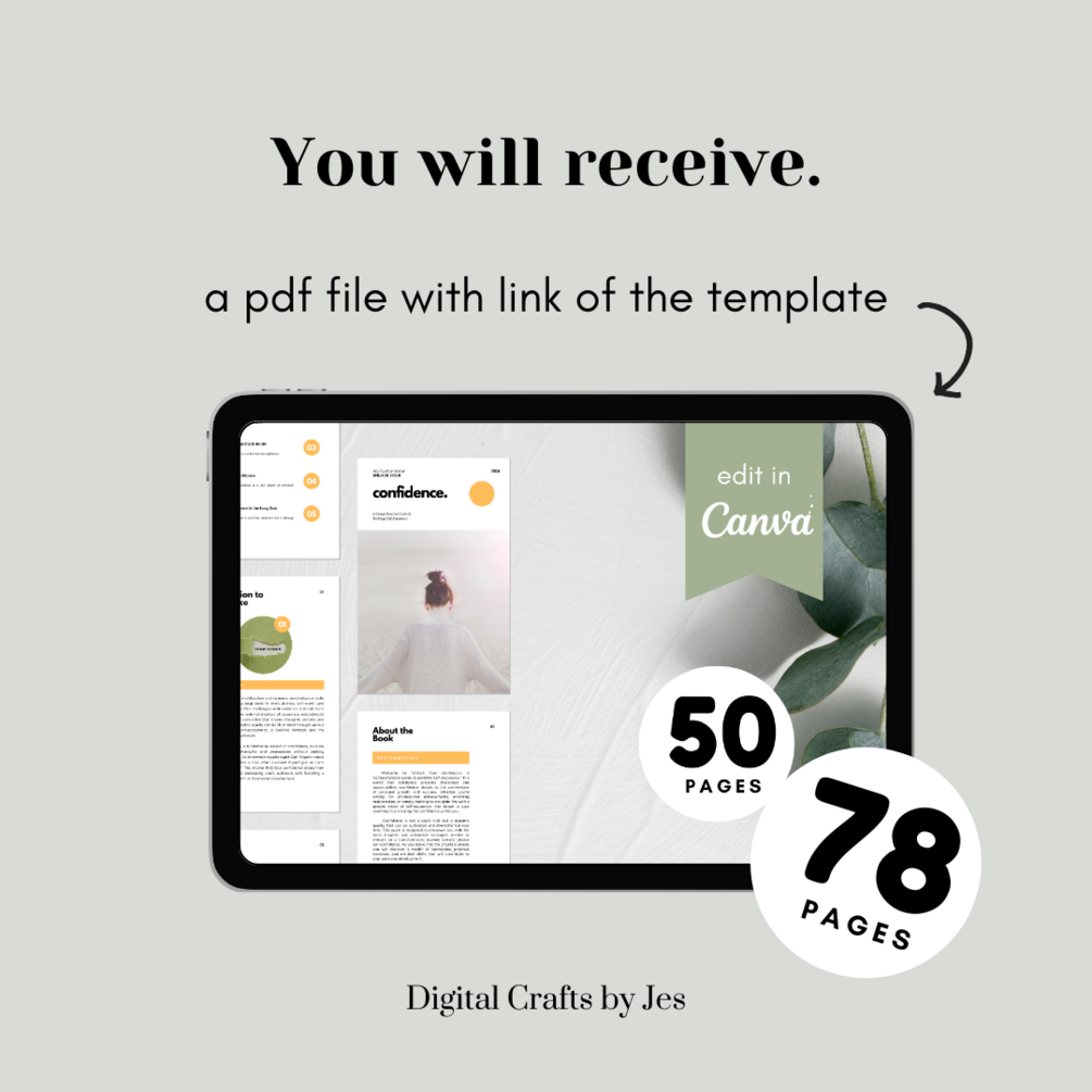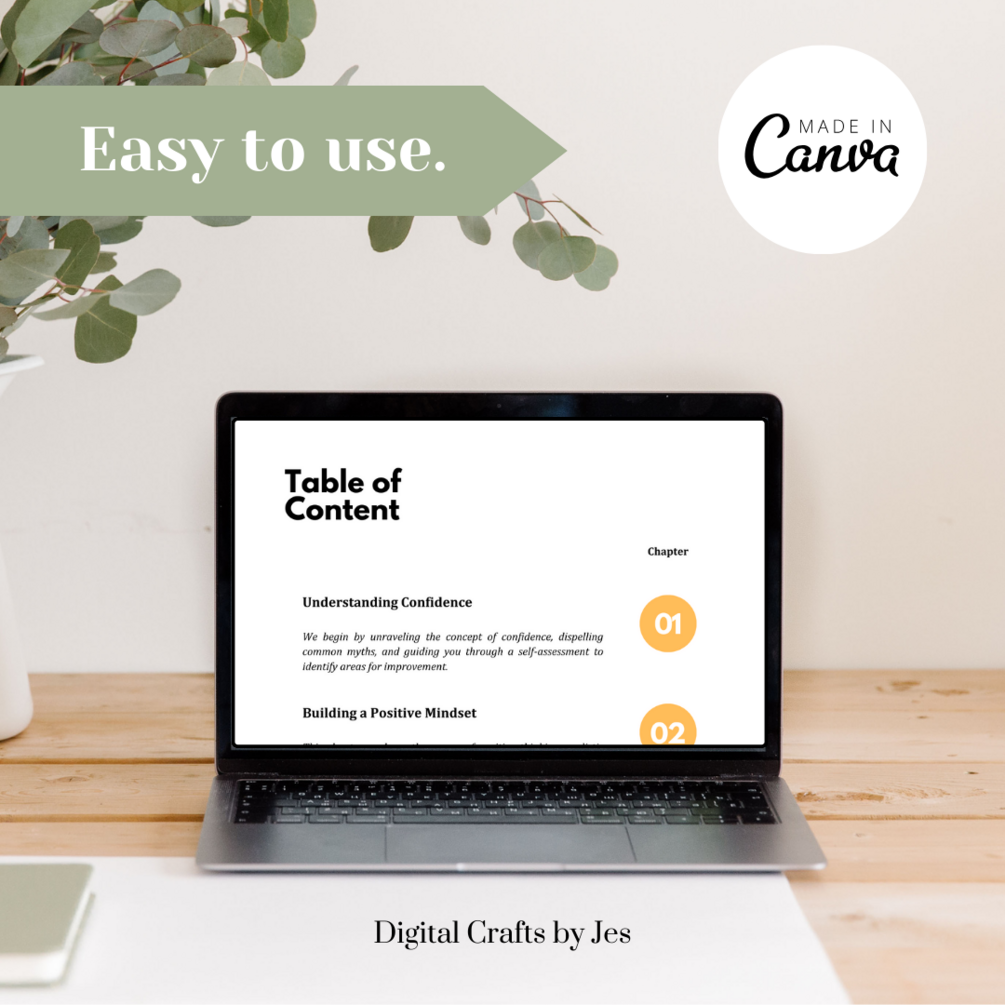 A transformative eBook designed to boost self-confidence and unlock personal potential. This digital guide includes expert insights, step-by-step strategies, and interactive exercises to help overcome self-doubt. The unique feature of editable Canva templates allows users to create visual tools like vision boards and affirmations for a personalized experience. Real-life success stories, mindset shifts, and lifetime access make this eBook a comprehensive and flexible resource for those seeking to build lasting confidence and achieve their goals. Invest in your self-development and start the journey towards a more confident and fulfilling future today!